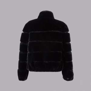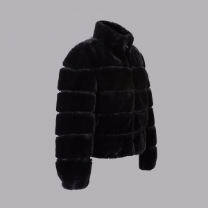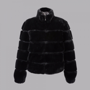 人造毛隔豬皮立領夾克